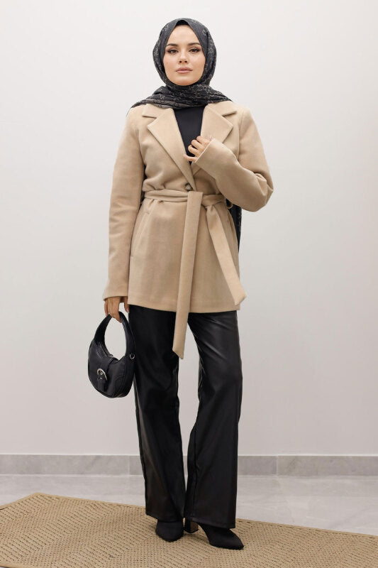 Dieser Mantel aus Fox-Stoff ist das neue Modell der Saison. Die praktische Verschlussmethode bietet Komfort und schicke Details. Durch das lange Ärmeldesign bietet der Mantel eine ausgewogene Wärme. Mit einem Gürtel auf der Taille und zwei Taschen ist dieser Mantel perfekt für jeden Anlass. Mit seinem schlichten Design und wärmenden Material sorgt er für Komfort und Stil. Leicht zu waschen bei 30 Grad. Tragbar in allen Größen.