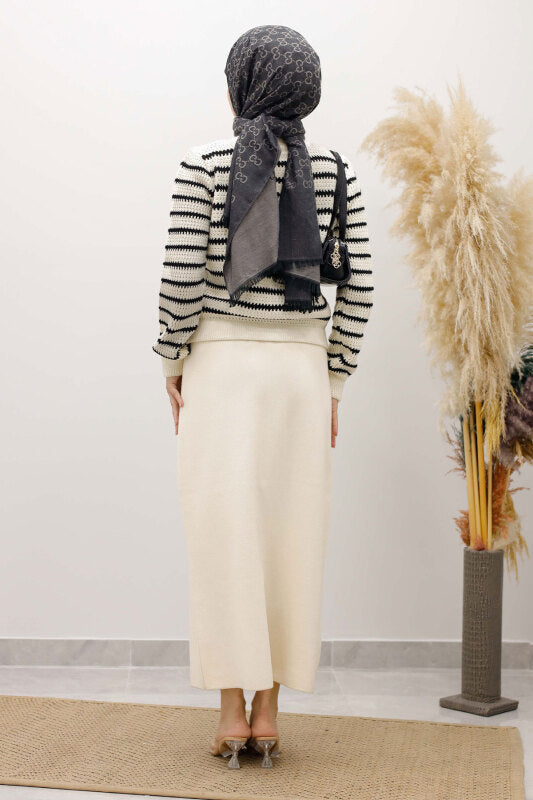 Diese gestreifte Strickjacke aus hochwertigem Trikotstoff bietet eine moderne Kombination aus Stil und Komfort. Das langärmelige Design sorgt für angenehme Wärme und ist ideal für Übergangszeiten. Mit einer praktischen Knopfleiste ausgestattet, lässt sich die Jacke leicht an- und ausziehen, während die dezenten Streifen einen eleganten Look schaffen. Die Passform ist auf Standardmaße ausgelegt und eignet sich für verschiedene Altersgruppen. Pflegeleicht bei 30 Grad waschbar, überzeugt dieses Modell durch seine Vielseitigkeit und hochwertige Verarbeitung.