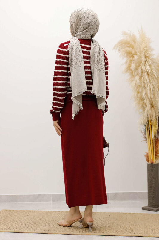 Strickjacke gestreift mit Knöpfen / Bordeaux