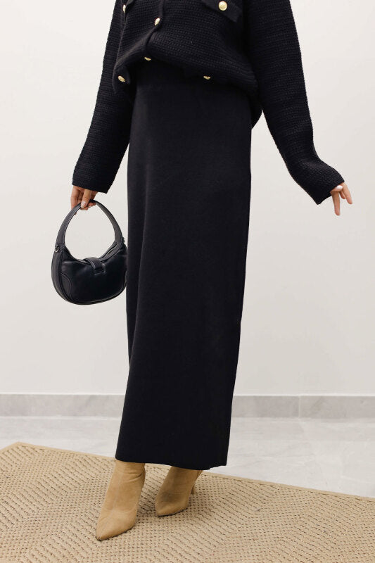 Dieser Strickrock aus Trikotstoff in Dunkelbraun, ist ideal für die neue Saison. Mit seinem Taschen- und Futterlosen Design verleiht er einen modernen und minimalistischen Look. Das Bleistift-Silhouette sorgt für eine elegante Präsenz und kann leicht mit allen Arten von Oberteilen kombiniert werden. Die mittlere Stärke des Stoffes sorgt für eine ideale Temperaturbalance während der Übergangszeit.