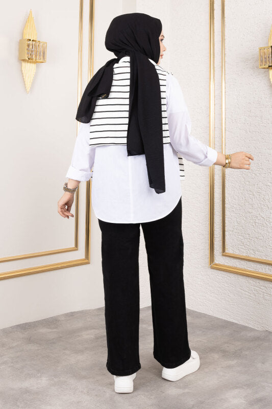 Diese weite Jeanshose aus elastischem Denim vereint Komfort mit modernem Stil. Der elastische Bund mit Kordelzug sorgt für eine individuelle Passform, während die fehlenden Taschen ein cleanes, minimalistisches Design gewährleisten. Die Hose ist 102 cm lang, die Beinsaumweite beträgt 22 cm und sie ist ideal für legere, elegante Looks. Für optimale Pflege empfehlen wir eine schonende Wäsche bei 30 Grad ohne starkes Wringen. Beachten Sie, dass Farbnuancen durch Beleuchtung variieren können. Eine perfekte Wahl für modebewusste Frauen, die Komfort und Stil schätzen.