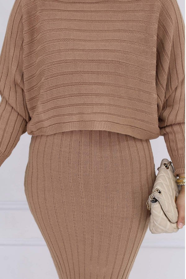 Dieser Strickanzug mit feinem Rippstruktur besteht aus 100 % acryl und bietet dank normaler Passform eine bequeme Passform. Der Pullover misst 39 cm in der Länge und 120 cm im Brustbereich, während der Rock mit einer Länge von 132 cm und einer Taillenweite von 62 cm für eine elegante Silhouette sorgt. Das Set verbindet Komfort mit stilvoller Zurückhaltung und eignet sich ideal für anspruchsvolle, legere Looks. Bitte beachten Sie, dass leichte Farbabweichungen aufgrund der Konzeptsessions möglich sind. Das Modell ist 168 cm groß und trägt Größe Standard.