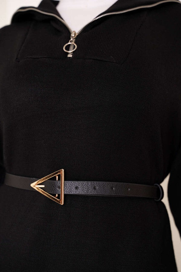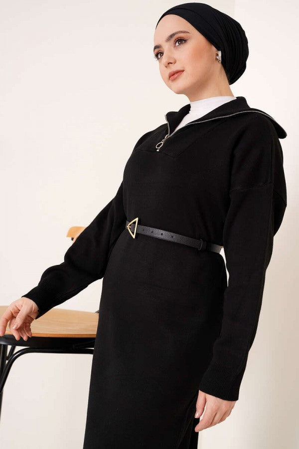 Strickkleid mit Halbreißverschluss / Schwarz